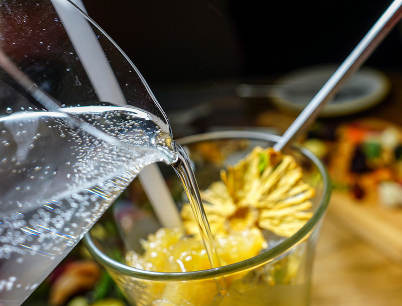 很特別的一道, 算第一次喝到這種的, 杯子裡有鳳梨片和冰塊
