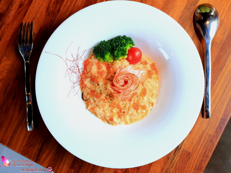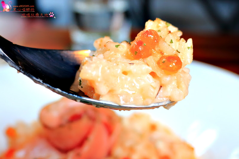 鮭魚卵爆漿的濃郁海味,搭配奶香醇厚的燉飯,雖然鹹了些,但意外契合,