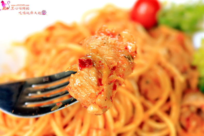 沾裏韓式泡菜醬汁的Q彈義大利麵條,吃起來真的很涮嘴,