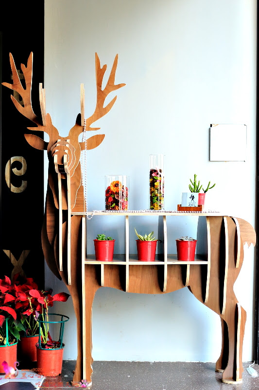 一進店就能看到這隻老闆從海外購買的俊俏馴鹿。