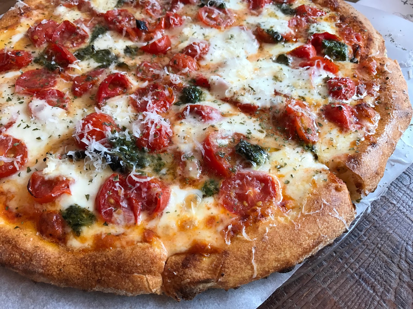 主角瑪格莉特披薩上桌,立刻驚豔全場,大量的聖女番茄滿佈十吋披薩表面,番茄烤得軟透,莫札瑞拉起司也用得很豪邁,融化的模樣令人垂涎,羅勒葉的香氣撲鼻,上面還淋上些許初榨橄欖油,熱呼呼的拔出一片,讓起司流瀉垂下來,超好吃的!雖然價位偏高,還是覺得蠻值得的。