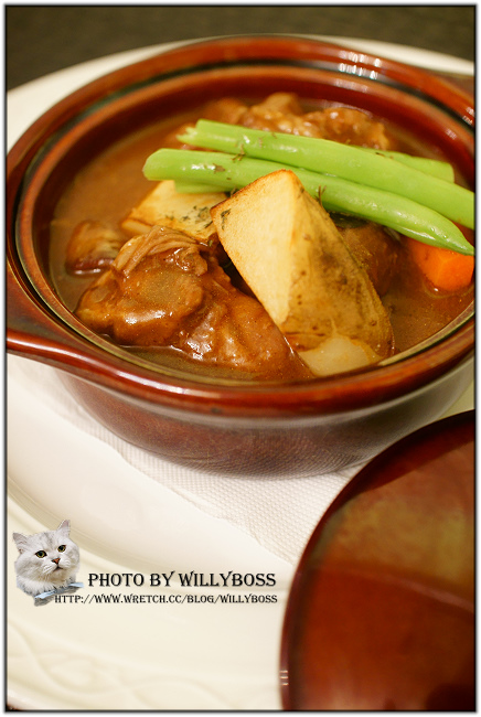 羊肉燉煮的很軟嫩,吃起來沒有一絲騷味,取而代之的是蕃茄和蔬果燉煮之後散發出的微微酸甜,比較可惜的是份量稍小,算算只有大約五塊至六塊左右的大塊羊肉,另外加上一些馬鈴薯和胡蘿蔔可以填肚子XD,更遺憾的是沒有附贈飯類可以配(爆)。