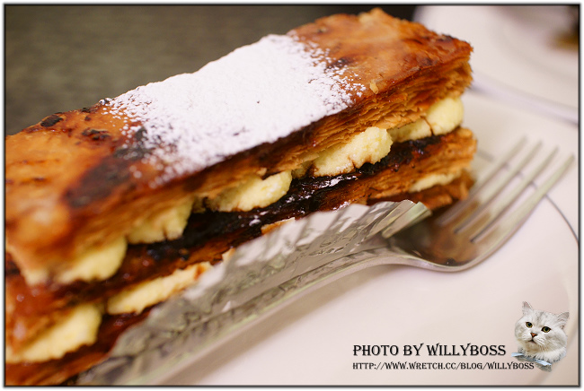米勒費尤,類似焦糖千層的甜點,酥脆的千層口感很特別,但很容易吃的四分五裂是真的XD。