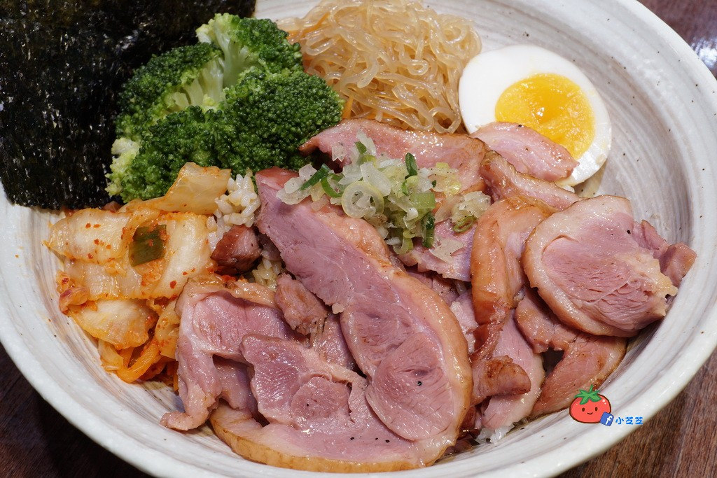 鴨肉軟嫩多汁,配上皮的膠質滑順而好入口!份量不少,女生能吃完這一整碗就可以很飽啦!