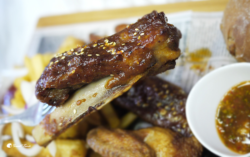 【醬燒碳烤豬肋排】醬燒後的豬肋排吸飽了醬汁,味道調配的非常香,而且肉質也溼潤不柴,烤的非常恰到好處呢!