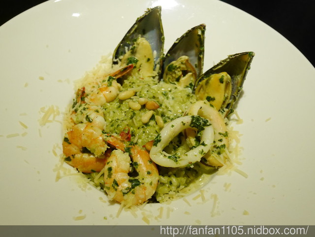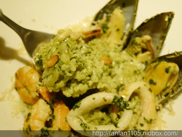 燉飯吸附了特製的青醬,吃起來濃郁滑順,連挑食的寶貝都吃了好幾口