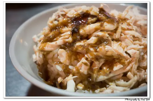 另外在小菜的地方挑了看起來膠質很豐富的千層風(NTD90)豬耳朵,豬耳朵在湯汁裡面塑形後、切成一片片薄片,每一片都有大理石般的紋路、以及光澤,是豬耳朵的創意料理:D 這裡要特別說一下它上面淋的麻油,超級濃郁。