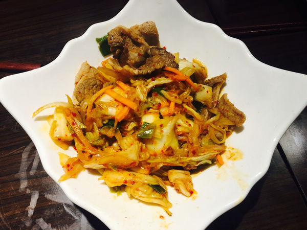 「泡菜牛五花」很入味且肉質Q有彈性搭配泡菜吃連小朋友都愛吃(實際上小朋友敢吃一點小辣啦!)