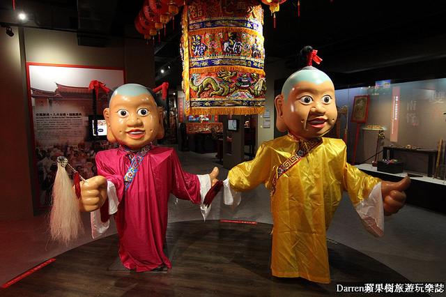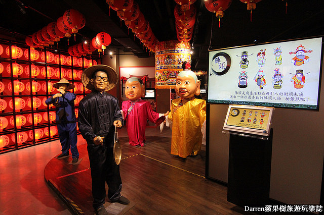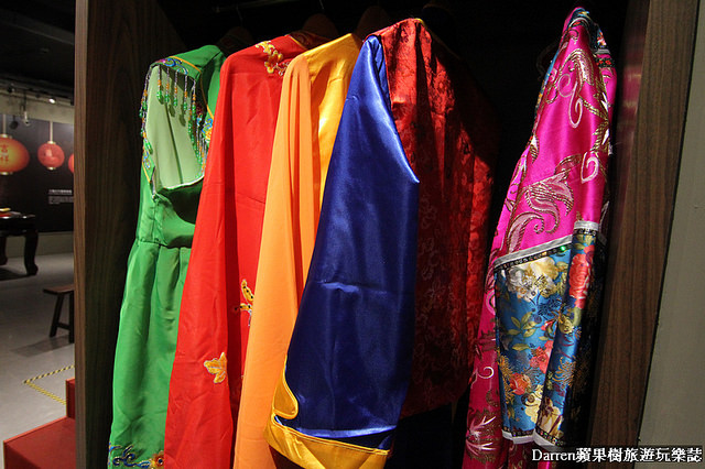 土地公慶典裡頭的歌仔戲場景及布袋戲場景都搬進展區,還有準備衣服讓大家可以變裝一下