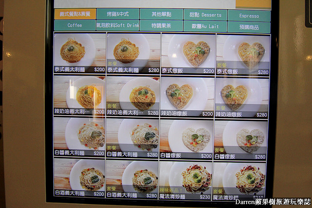 MENU就在自動點餐機上面,以義大利麵和燉飯為主,價位在200~280元之間