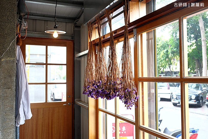 台中老宅何其中,每每總讓我想去咀嚼它所蘊含的韻味,這天經過干城街,意外發現駐立於大馬路的老宅好有味道,忍不住入內一探究竟,原來是間甜點、冰淇淋專賣店,打開門,一陣乾燥花香撲鼻而來,又更增添了些許浪漫感覺。