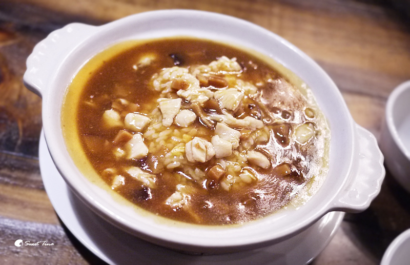 【鮑汁章魚飯】不辣,吸飽海鮮及醬汁後的飯,香氣十足外米飯的軟硬度也剛剛好,裝好碗後剛好就是四人的份量了。