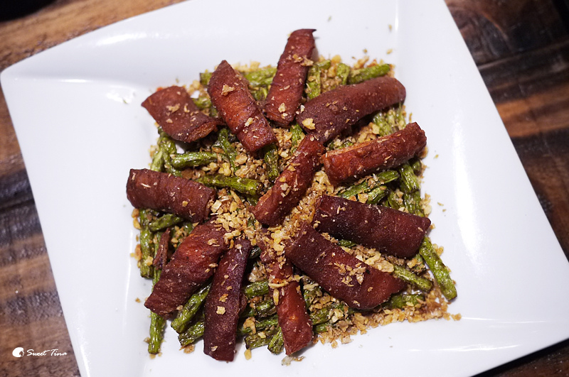 【四季肥腸】不辣,肥腸及四季豆炸過後,外頭酥脆、裡頭軟嫰,火候抓得非常的好咧,是道非常受大家喜歡的菜色哦!