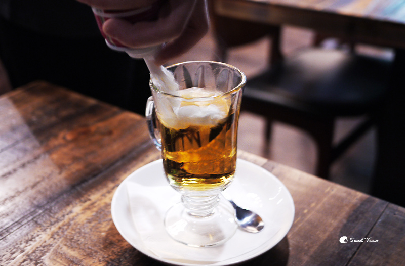 而老闆是將酒送上來後才現場擠奶油的,擠上奶油後的調酒,整個就夢幻起來了呢!