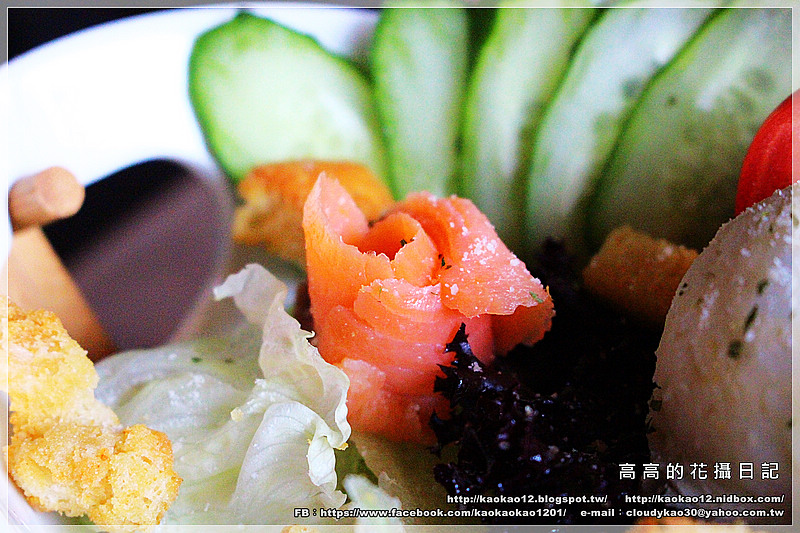 煙燻鮭魚鹹鮮、凱撒醬蒜香濃郁迷人、生菜沙拉新鮮脆口、馬鈴薯泥溫潤柔和、麵包丁酥脆,