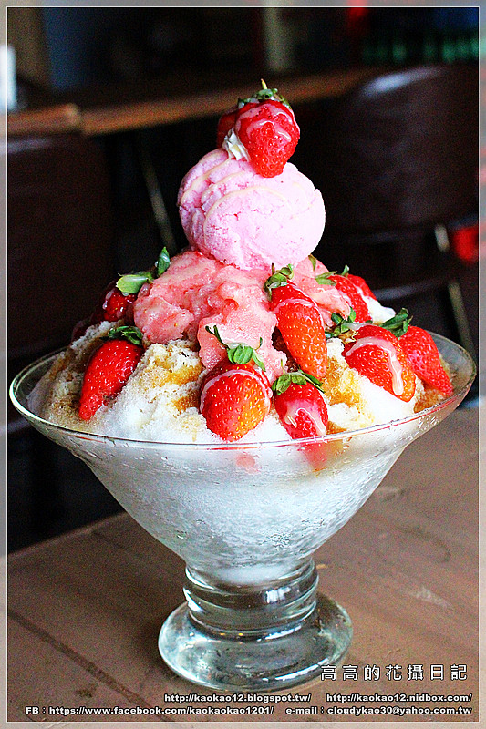 像是草莓冰沙又像是草莓雪泥的玩意兒、草莓冰淇淋,最上方再放上一整顆草莓點綴。