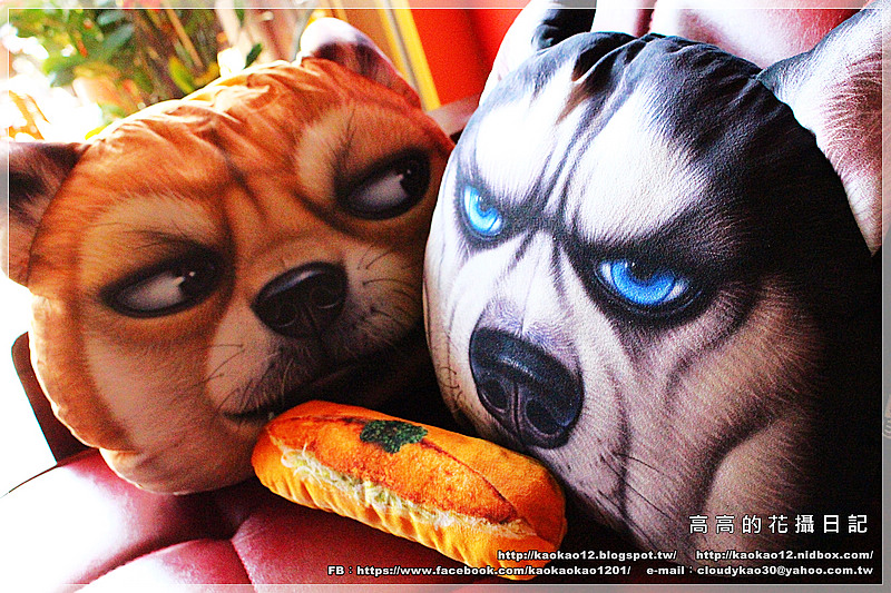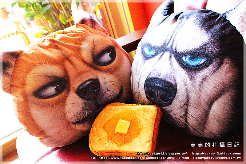 這兩隻大頭狗抱枕太可愛,我們後來還拿他們開玩笑惡搞拍了一堆照片。