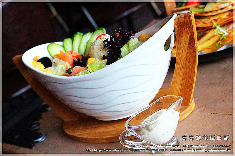 水吻是用一個我覺得超級特殊的容器來盛放沙拉,乍看下很像澡盆,
