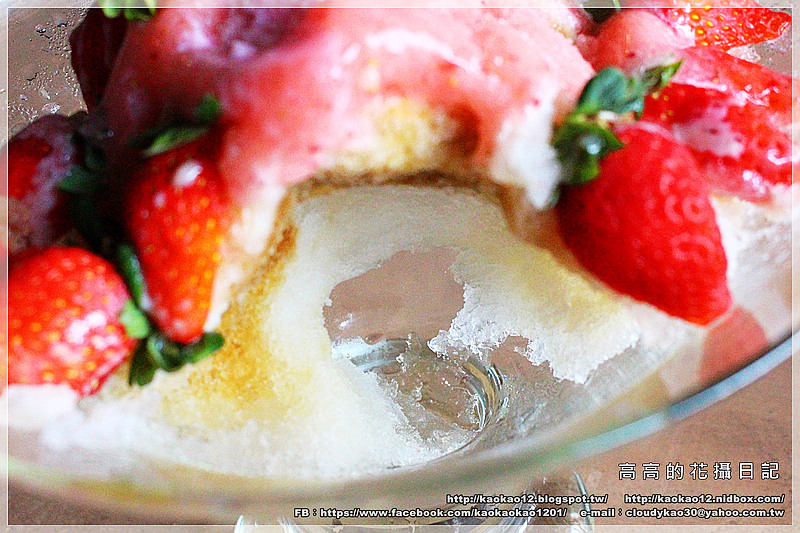 前面也有稍微提到,雖然這個巨無霸草莓冰底下鋪放的是刨冰,但卻是冰體相當細緻的刨冰哦,