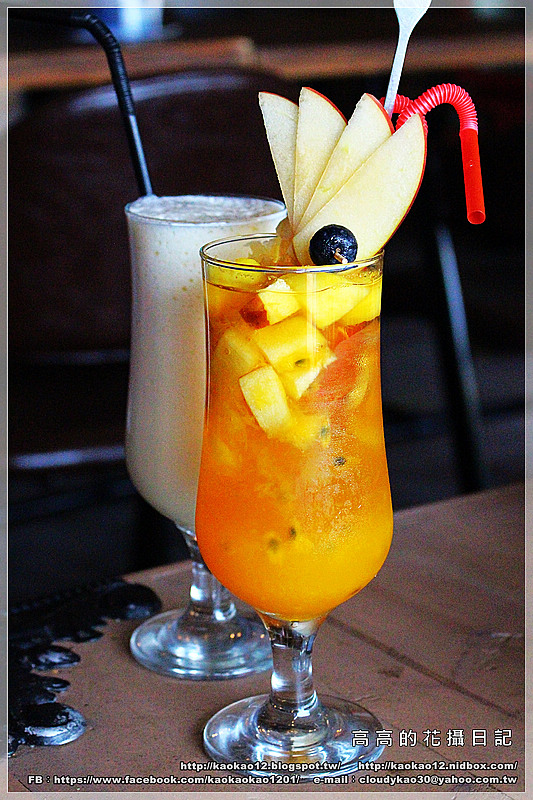 而且水果茶裡面放的水果種類也不少哦!有百香果、鳳梨、蘋果、柳橙、還有藍莓。