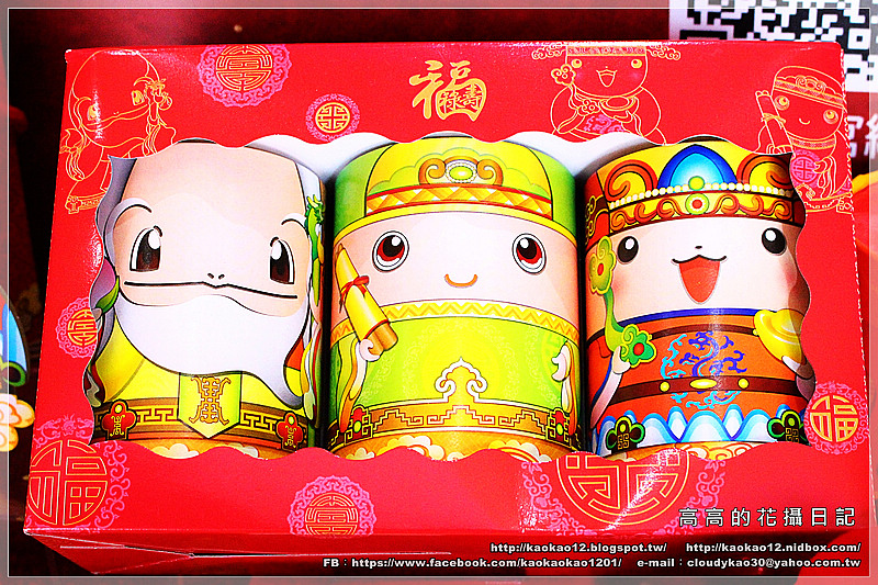 這些春節禮盒有福祿壽天團組合、開運禮盒─財神爺(或招財貓)、福氣財神、小舞獅等Q版設計,