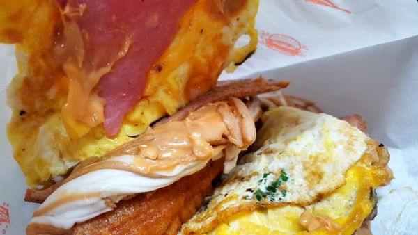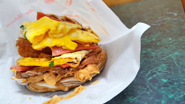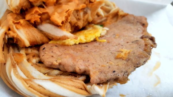 第一+二夾層 是 蔥蛋/火腿片/起士/花生醬+在蓋上完全失控的油條....