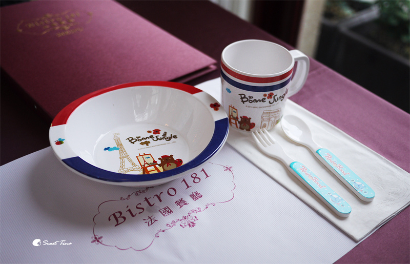 Bistro 181不只餐廳很有法國風味,連兒童餐具也走法國風,超卡哇依的啊~