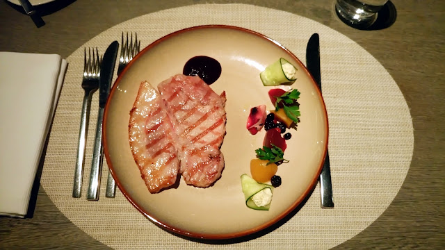 ▼另一個主餐,丹麥豬里肌襯蜂蜜甜菜佐綜合莓果泥($1480)