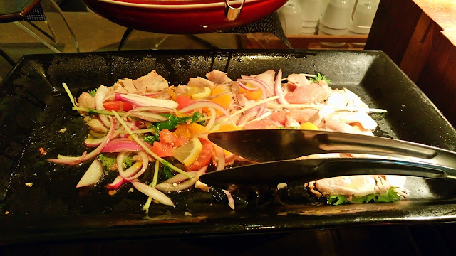 生魚片就只有煙燻鮭魚和生鮮鮭魚兩種,下面這盤是綠芥末鱸魚甜椒沙拉