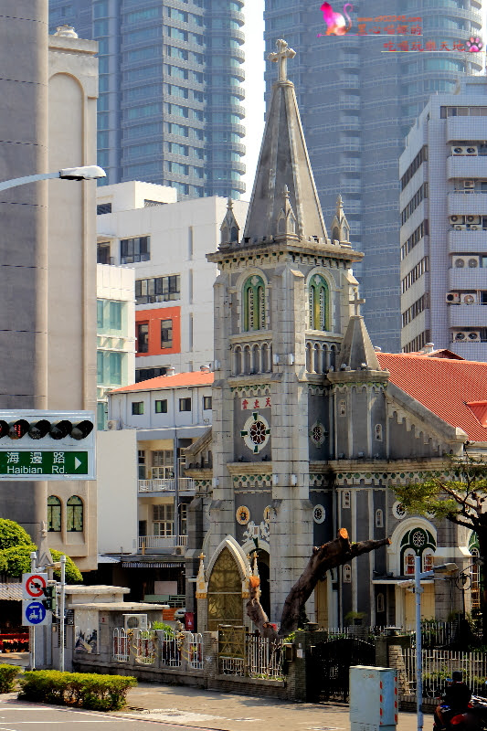 另一邊的臺灣基督長老教會是非常有特色的建築,