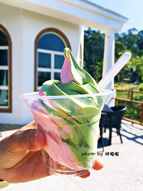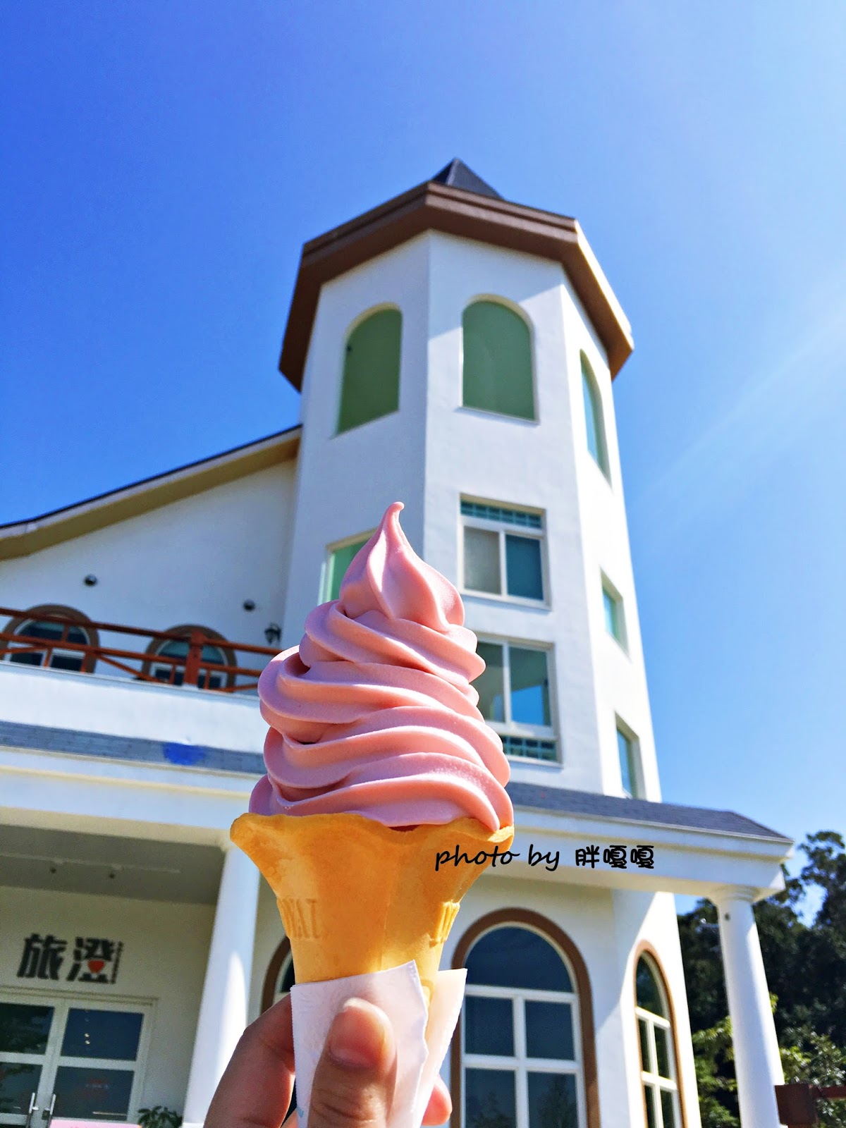 旅澄的霜淇淋吃起來草莓味濃郁