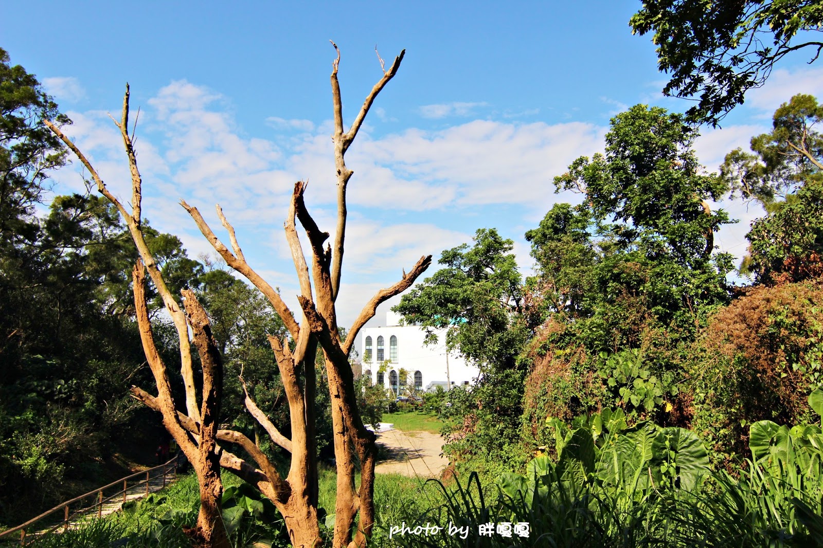 這枯樹與一旁蓊鬱的樹木形成鮮明的對比