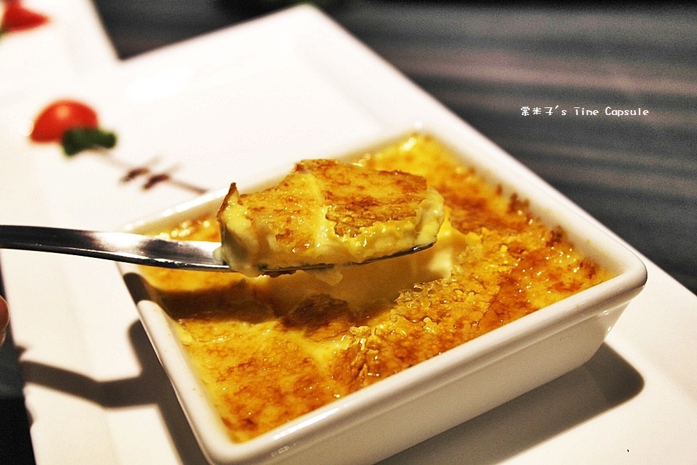 焦糖烤布蕾表層炙燒過後的糖霜薄博一層脆脆的,