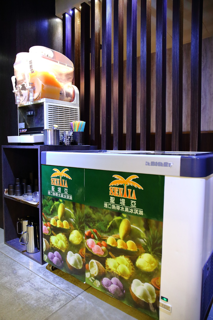 不僅環境比一般火鍋店舒服,還有無限取用的冰淇淋,使用的是聖堤亞(SENTIA)來自泰國的熱帶水果