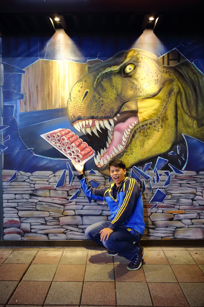這間則位於捷運小巨蛋站附近,首都大飯店的後巷,店外畫著一個巨幅3D暴龍,遠遠就能找到~