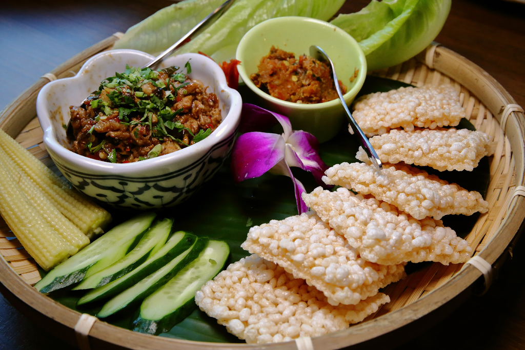 酥脆的鍋巴上頭放有泰式風味的打拋肉,酥酥脆脆的口感真的很不一樣