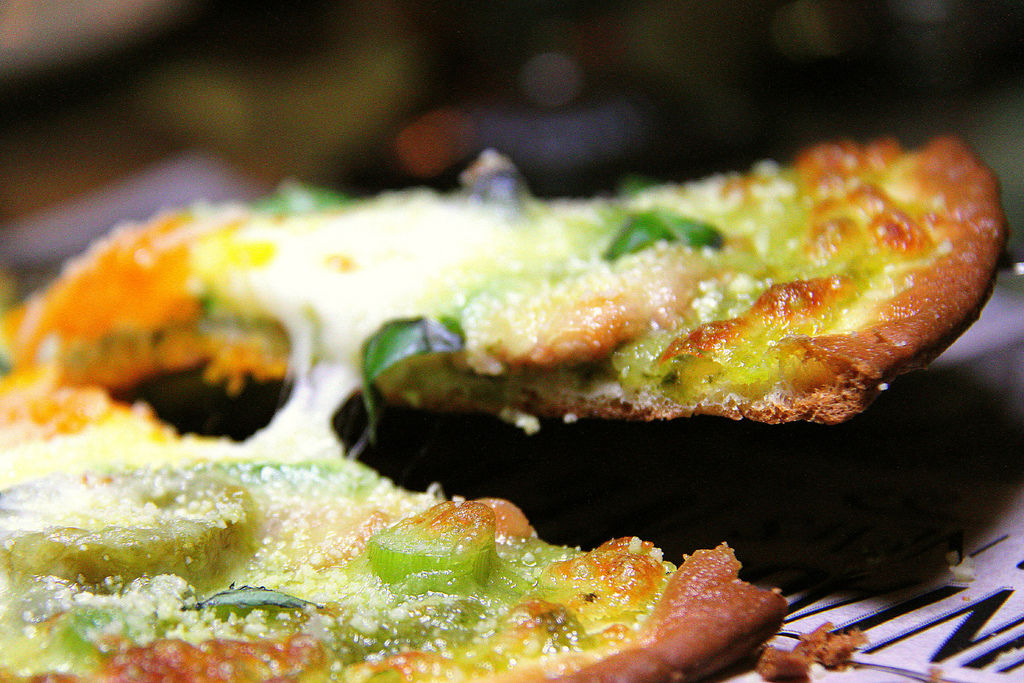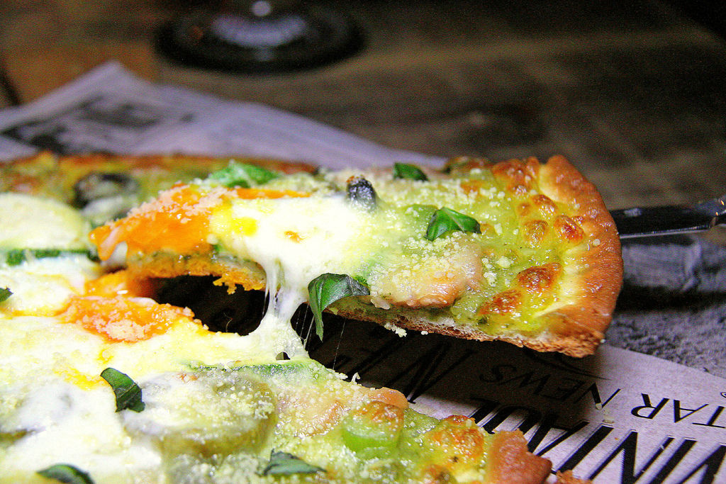 這種薄皮披薩真的很好吃,餅皮薄的關係,烤起來邊緣會顯得比較焦脆,口感像極了餅乾,底部軟Q、外