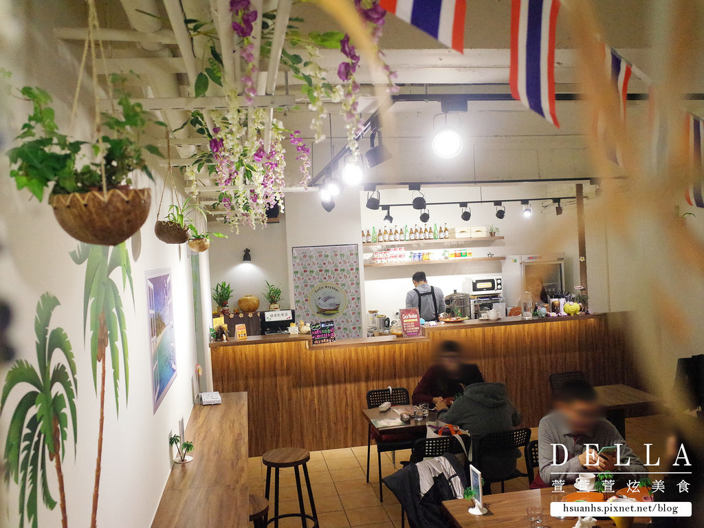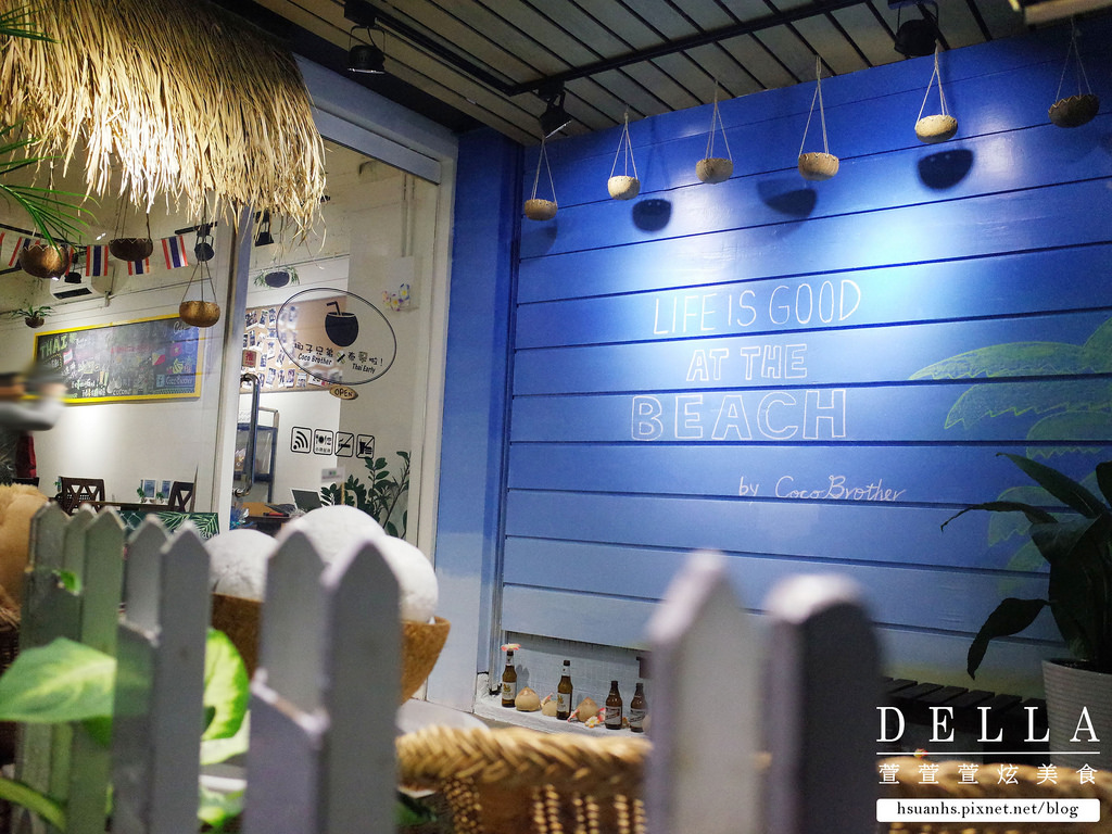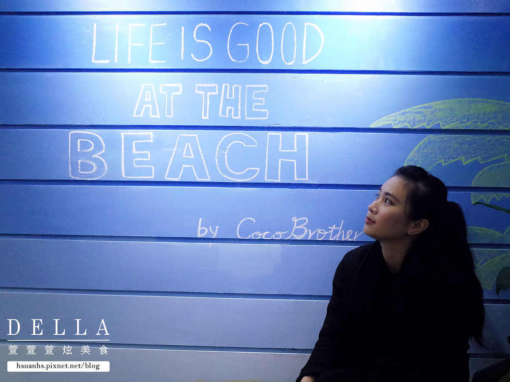店面是海島度假風格,我最喜歡那面水藍色的牆,配上椰子殼裝飾十分舒服