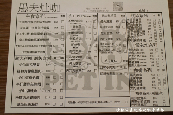 先來看看『愚夫灶咖』的菜單吧