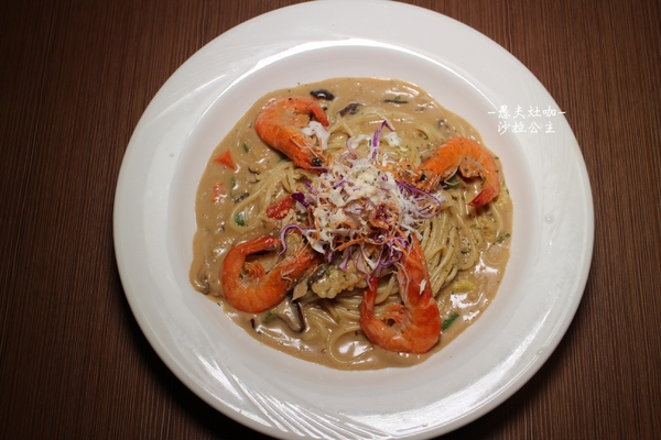 為了讓大家營養均衡在義大利麵上在放上一點高麗菜絲吃起來好清爽