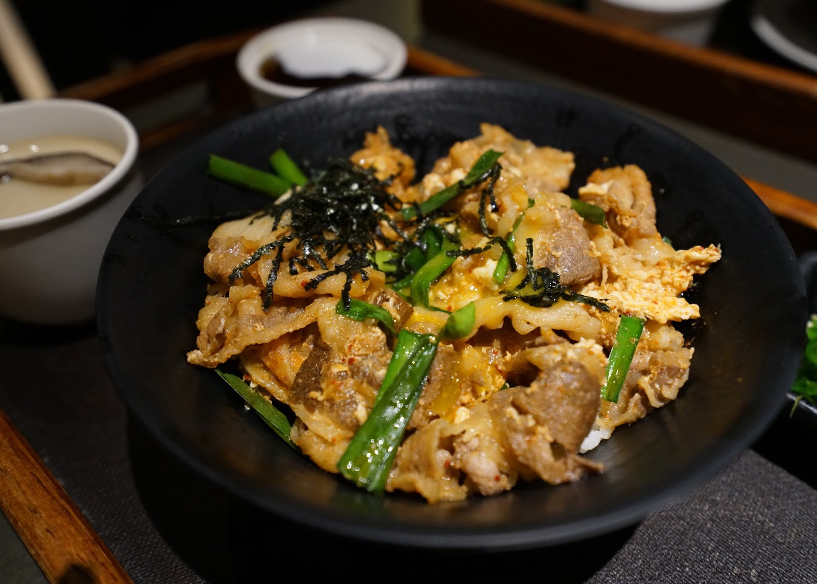 這份韓式泡菜牛肉丼定食,滿滿的牛肉帶著韓式泡菜的香氣卻不會太辣,肥中帶瘦的牛肉厚度很夠,吃起來讓人覺得非常飽足,不到兩百元的價格還搭配整套的茶碗蒸、小菜和甜點,可說相當實惠!