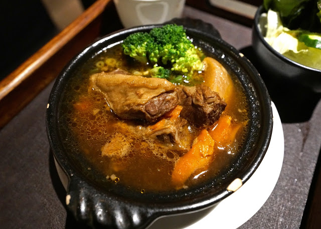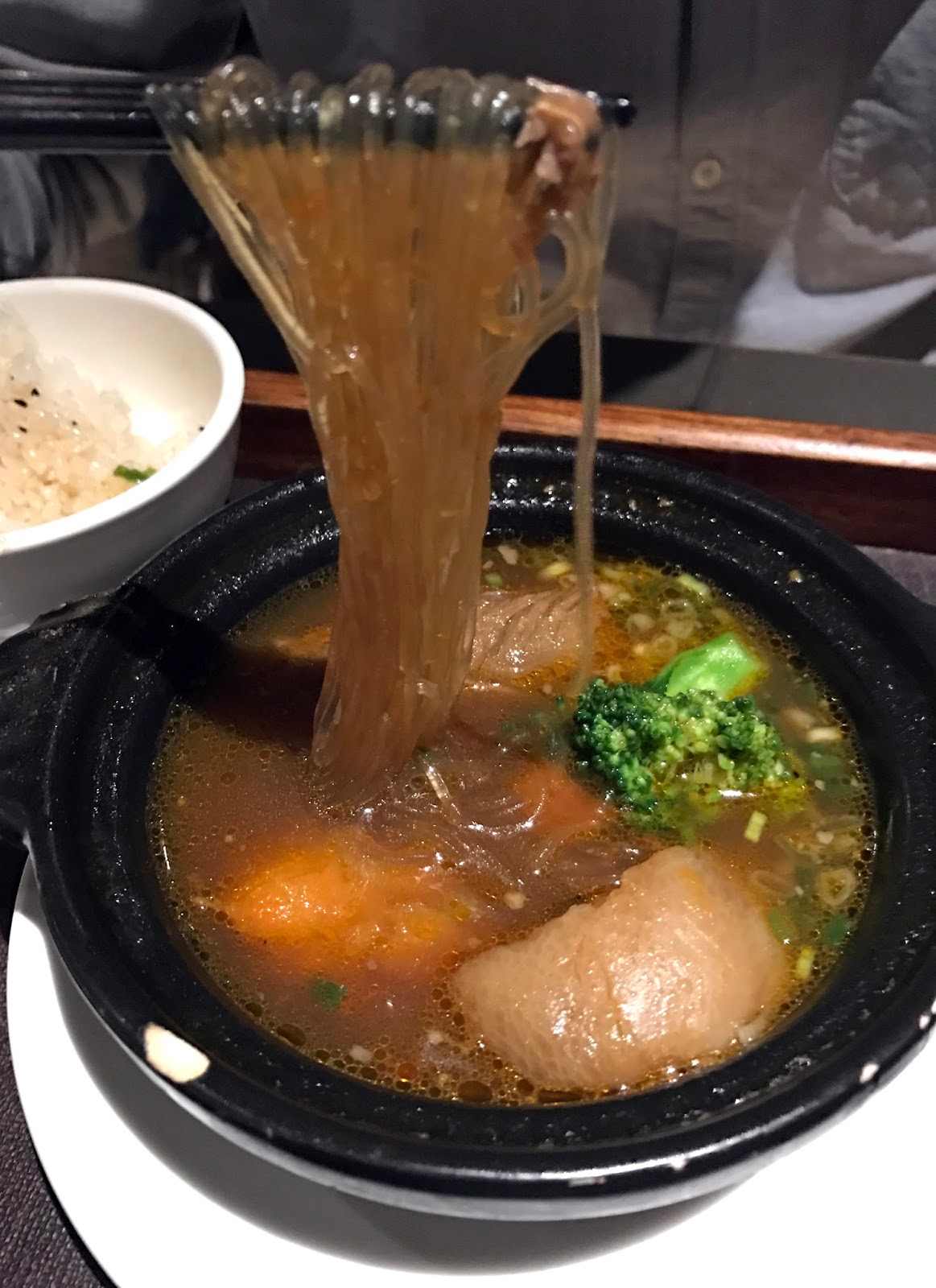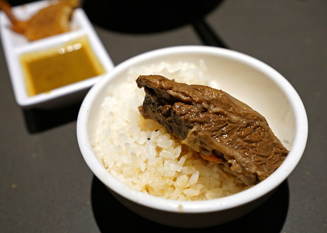 這份紅酒牛肉燉煮讓人更為驚豔,切得超大塊的牛肋條豪邁地給了三四塊,裡頭還有紅、白蘿蔔和粉絲,食材下得那麼大方,湯汁當然甜得不得了。