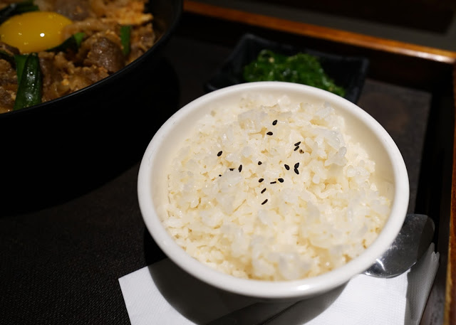 將中央的蛋黃拌入飯中,熱騰騰的牛肉飯立刻與蛋黃融合,口感吃起來更加滑順,海苔絲增加口感層次與香氣,無論視覺或味覺上都讓這碗韓式泡菜牛肉飯更為細膩。