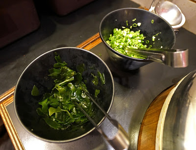 味噌湯也是無限取用,而且湯頭一點都不馬虎,是用大片的昆布熬出來的湯底,溶入味噌後自然那麼好喝,取用時別忘了加入大量的新鮮蔥花和海帶喔。