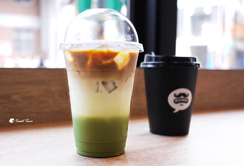 抹茶拿鐵三個不同層次的顏色呈現~好美呢,但如果你是點熱的就是採用紙杯,看不出層次感哦!