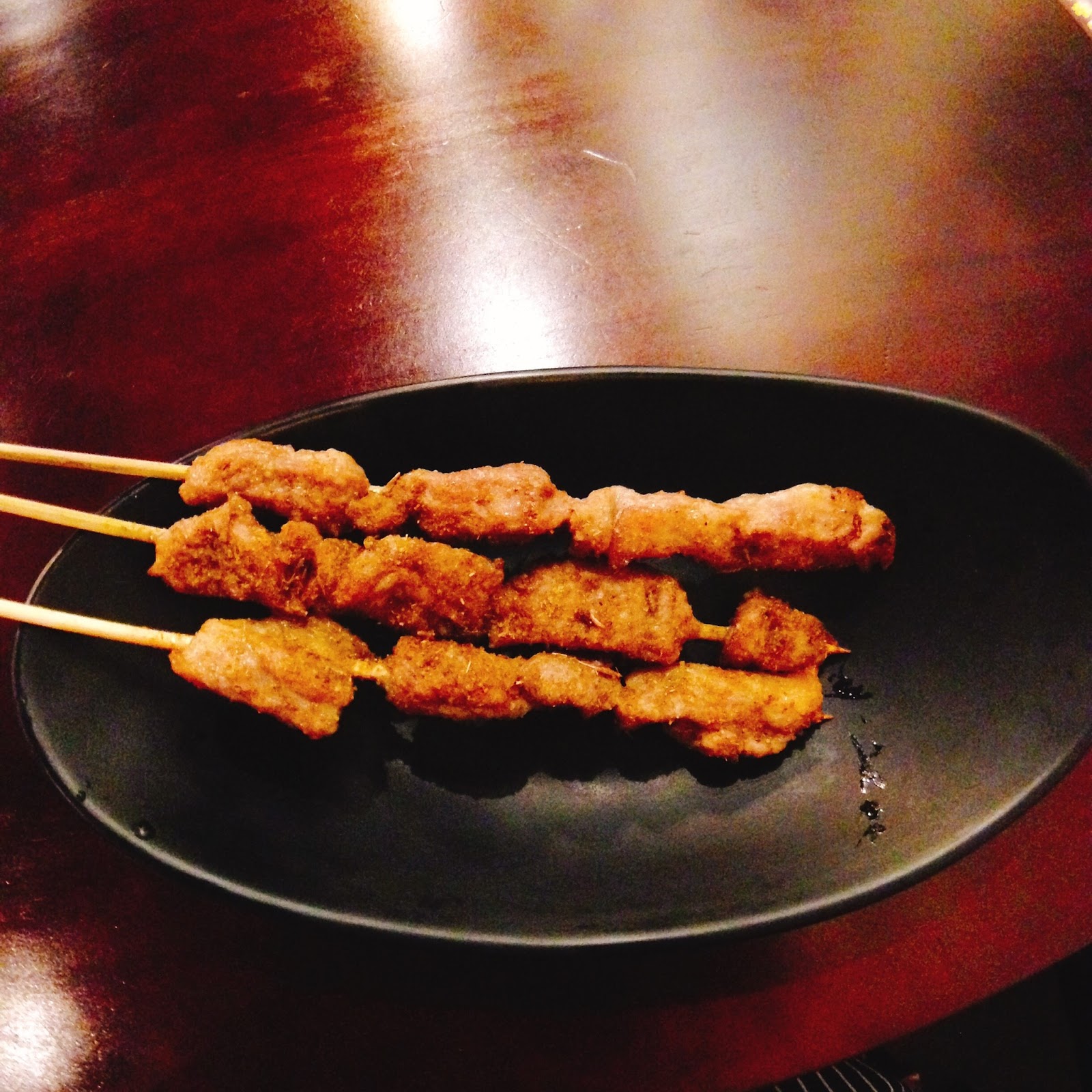 【烤松阪豬串*2】$100,普普,可以再焦香一點