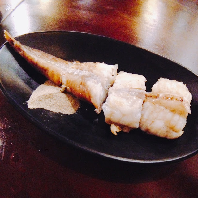 【烤安康魚尾】$160,也是很特別,只有中間一根龍骨,其他都是Q彈的肉質,不錯推推,很下酒!