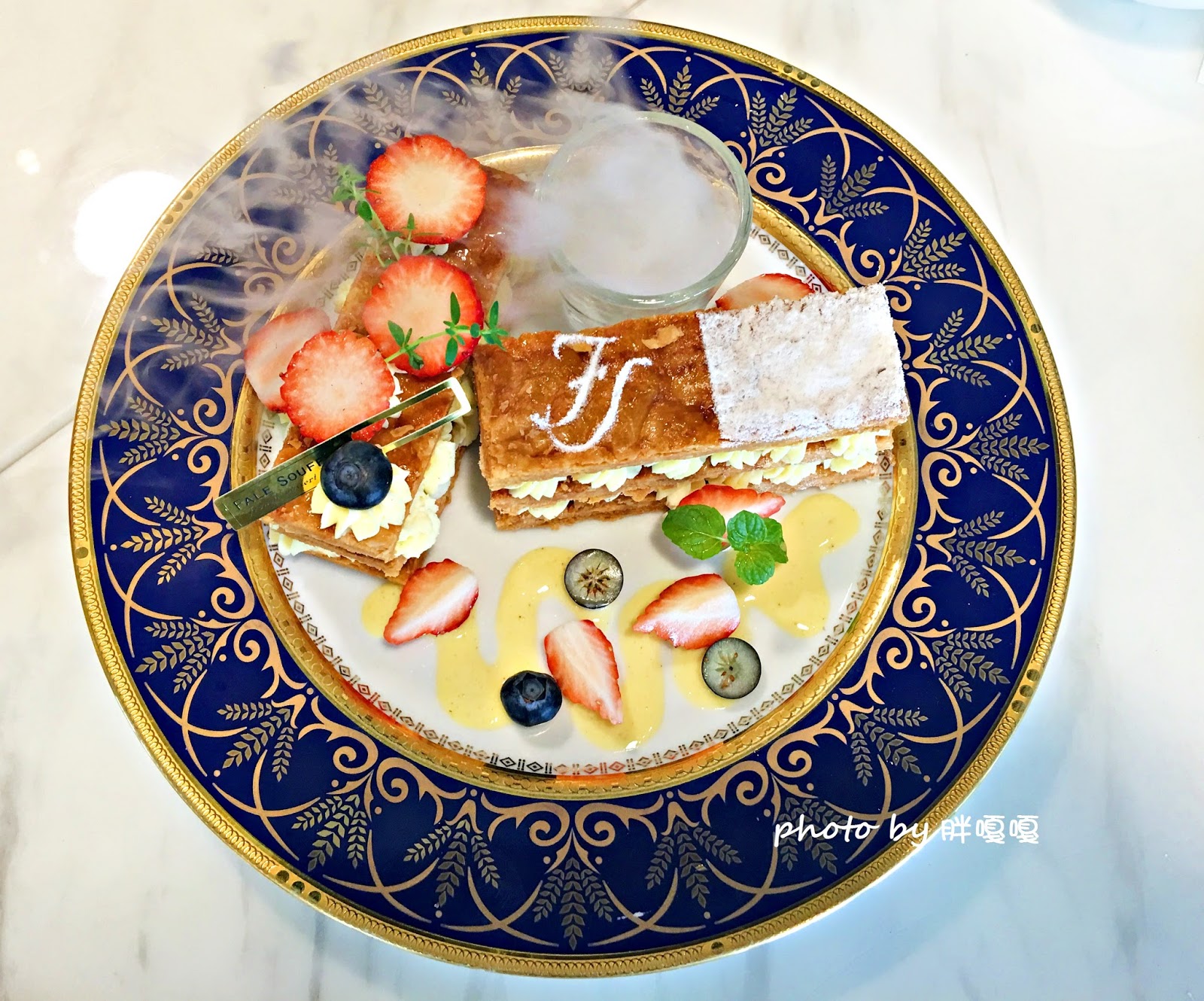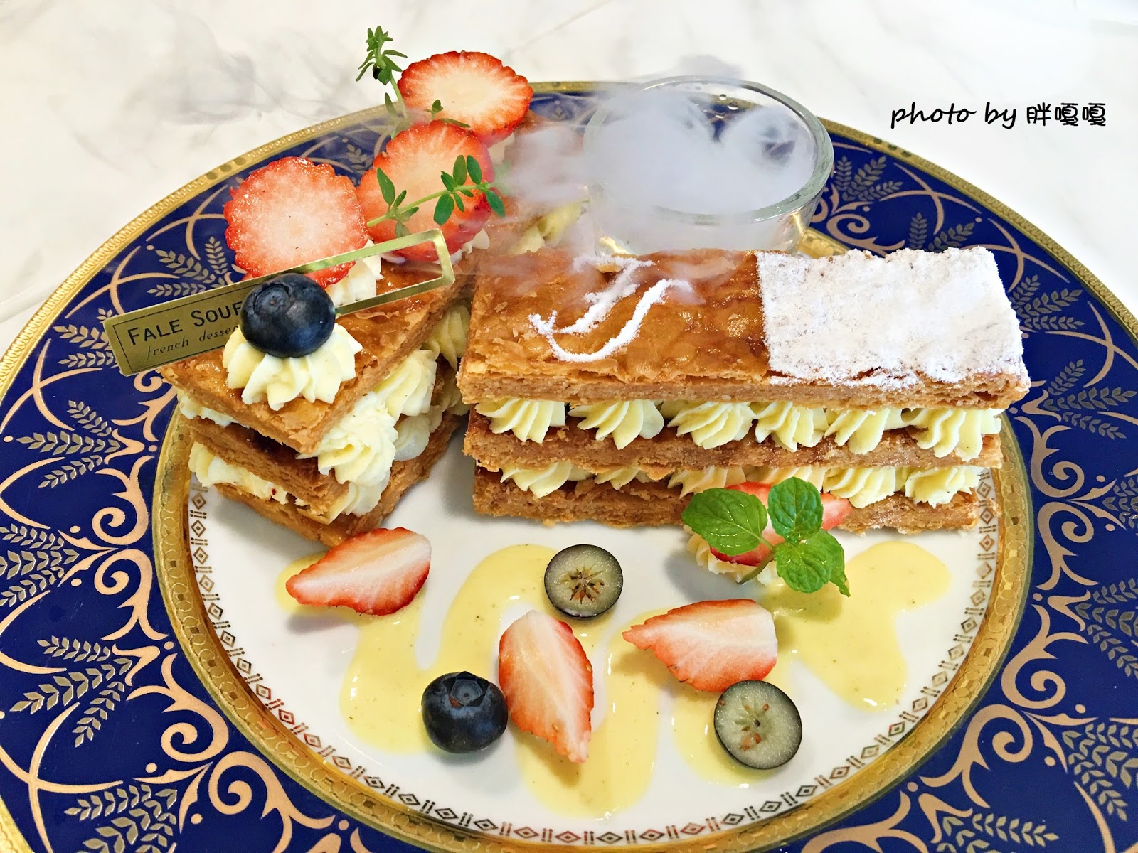 就連千層派上頭也有糖粉撒出的LOGO