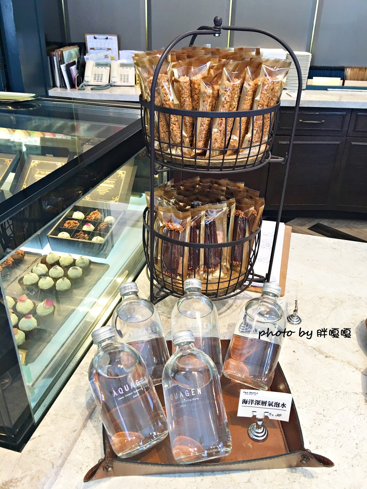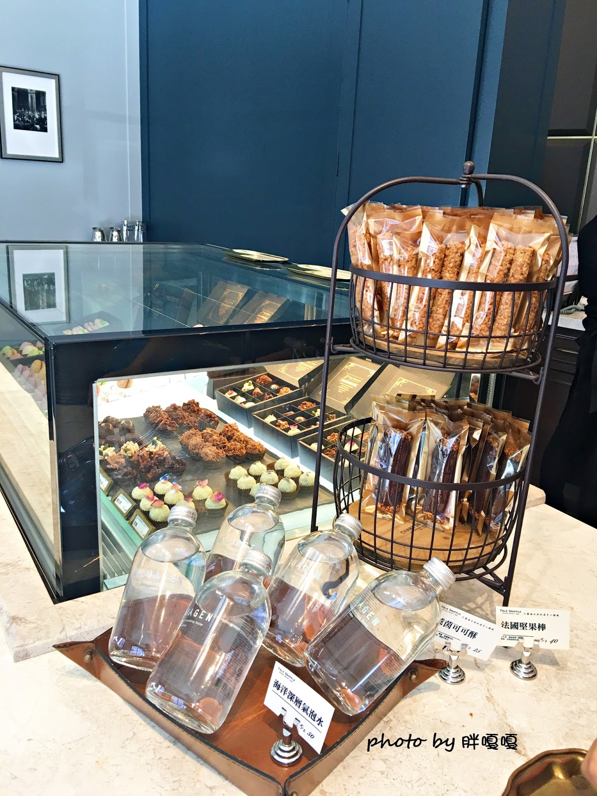 櫃台的另一頭則放置了瓶裝氣泡水、小點及巧克力!!!