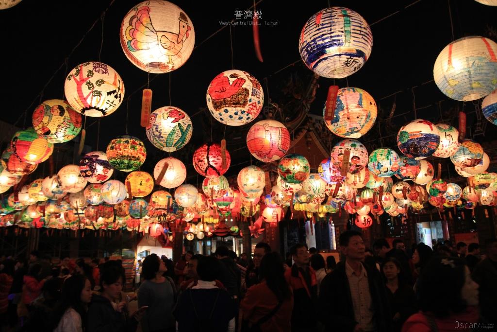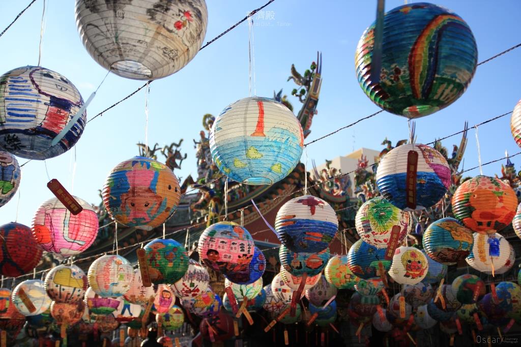 普濟殿 則是會在過年期間 在巷弄以及國華街三段的上空 懸掛一盞盞手繪的燈籠 妝點了巷弄中的風景